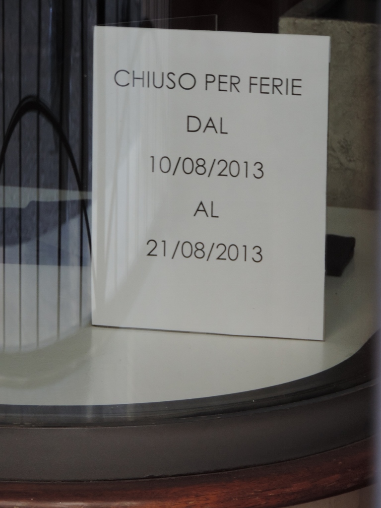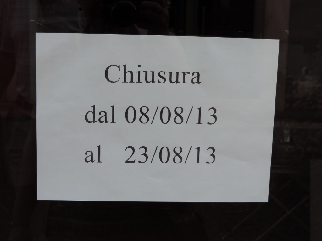 Yes–many businesses are closed for the full week, and often longer, even up to a month. All these signs were along one street in Caserta, where we stopped on our way to Calabria.