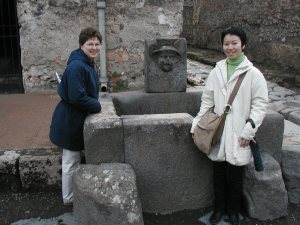 Our classes met in the morning, and we had most afternoons free, so during our second week we launched out into some sightseeing together. The February rain didn’t hinder us from taking in Positano with our teacher, riding the public bus around the hair-raising cantilevered roadway hanging off the cliffs of the Amalfi coast. The next day, Wakana, Vern, and I went to Pompeii together on the train. With no teacher to provide language mediation, we did the best we could in Italian, and I provided English translations to Vern as needed.